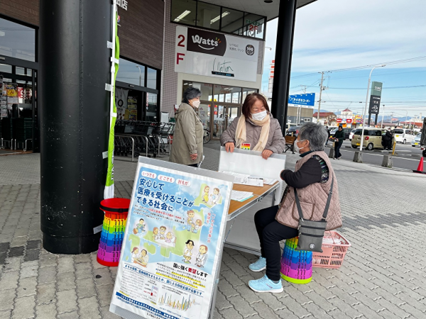 「地域住民の医療を受ける権利を保障するために医療機関の維持存続への支援を求める請願署名」を集めるための署名活動を行いました。