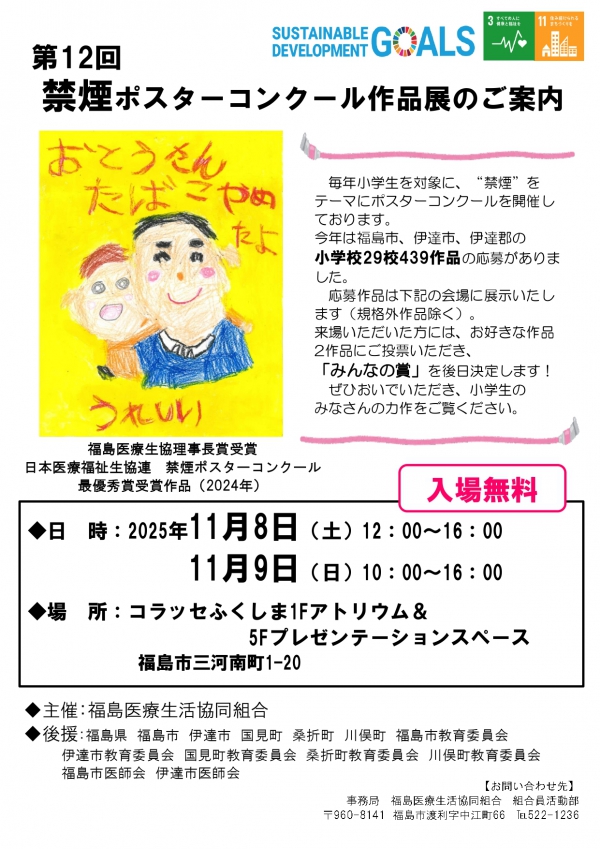 11/8(土)~9(日)に、コラッセふくしまにて 第12回禁煙ポスターコンクール作品展示会を開催しま…